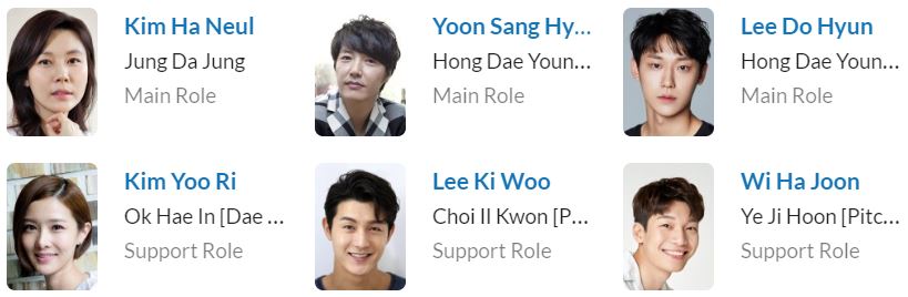 نقش های اصلی Kim Ha Neul در نقش Jung Da Jung بازیگر سریال های : Yoon Sang Hyun در نقش Hong Dae Young ( بزرگسالی ) بازیگر سریال های : Lee Do Hyun در نقش Hong Dae Young / Go Woo Young ( جوانی ) سایر بازیگران Wi Ha Joon در نقش Ye Ji Hoon Kim Yoo Ri در نقش Ok Hye In Kim Mi Kyung Lee Byung Joon در نقش Hong Joo Man Lee Ki Woo در نقش Choi Il Kwon Kim Gang Hyun در نقش Ko Deok Jin Lee Mi Do در نقش Choo Ae Rin Noh Jung Ui در نقش Hong Shi Ah Rye Un در نقش Hong Shi Woo Choi Bo Min در نقش Seo Ji Ho Hwang In Yup در نقش Goo Ja Sung Lee Chun Moo در نقش Shi Woo Oh So Hyun در نقش Jeon Bo Bae Song Yoo Hyun در نقش Mi Young Kim Han Sangلیست بازیگران