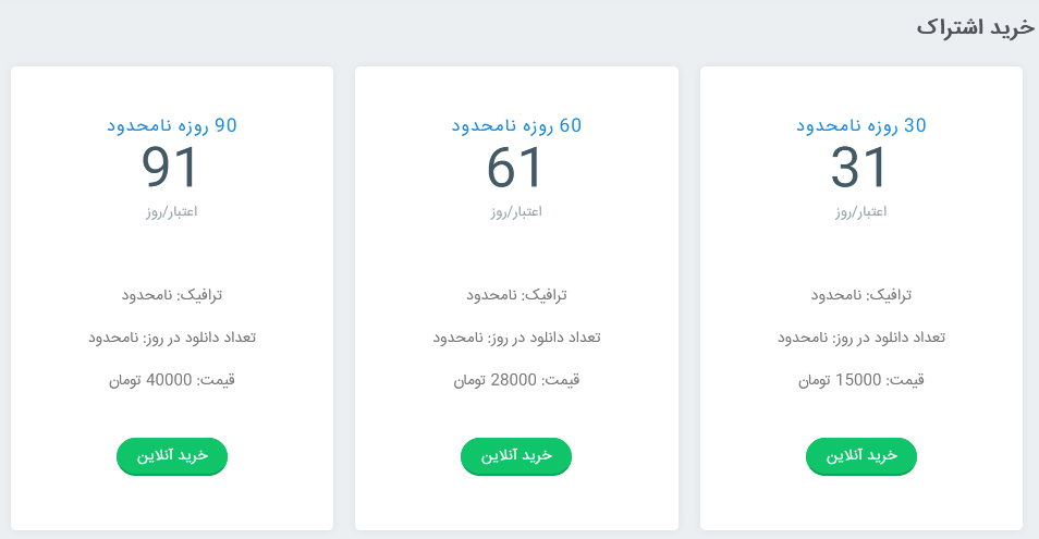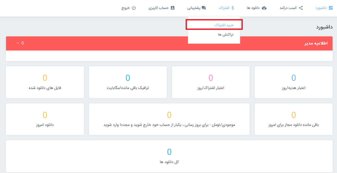 2-بعد از ثبت نام، وارد پنل کاربری می شوید که باید روی خرید اشتراک کلیک کنید: