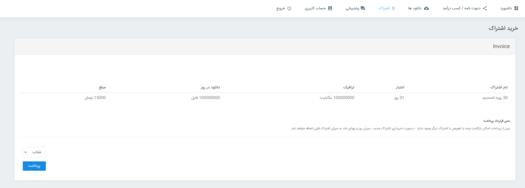 3-یکی از بسته ها را انتخاب کنید و در صفحه بعد روی پرداخت بزنید:
