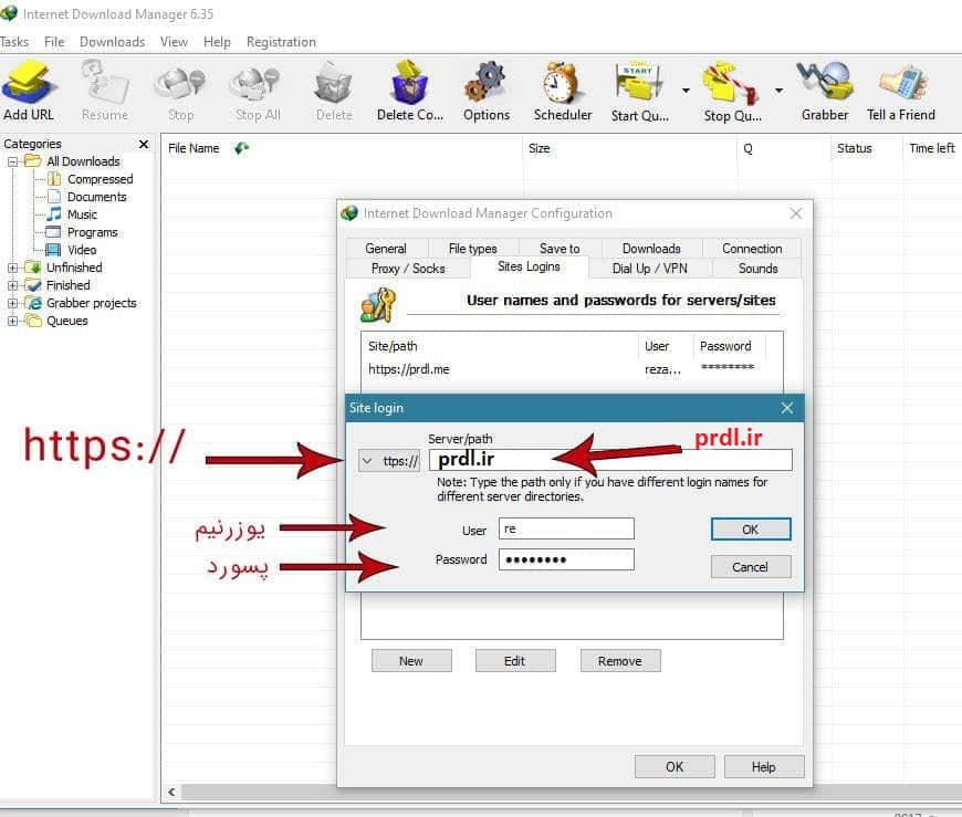 برای دانلود توسط دانلود منیجر باید نام کاربری و رمز خود را در دانلود منیجر وارد کنید.