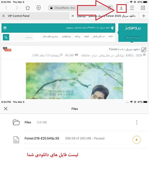 توجه کنید که سایر برنامه ها در دیوایس های ios که قابلیت دانلود منیجر دارند (مرورگر safari این قابلیت را ندارد) روشی مشابه آنچه که در مراحل بالا توضیح داده شد دارند. به عبارت دیگر کافیست یکبار با آن برنامه در پنل خود لاگین کرده و سپس اقدام به دانلود سریال های خود کنید.