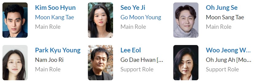 نقش های اصلی Kim Soo-Hyun در نقش Moon Kang-Tae بازیگر سریال های : Seo Ye-Ji در نقش Ko Moon-Young بازیگر سریال های : Oh Jung-Se در نقش Moon Sang-Tae بازیگر سریال های : Park Gyu-Young در نقش Nam Joo-Ri بازیگر سریال های : سایر بازیگران Kim Joo-Hun در نقش Lee Sang-In Kim Chang-Wan در نقش Oh Ji-Wang Kim Mi-Kyung در نقش Kang Soon-Duck Jang Young-Nam در نقش Park Haeng-Ja Lee Eol در نقش Ko Dae-Hwan Kang Ki-Doong در نقش Jo Jae-Soo Park Jin-Joo در نقش Yoo Seung-Jae Jang Gyu-Ri در نقش Sun-Byeol Woo Jung-Won در نقش Oh Jung-Aلیست بازیگران