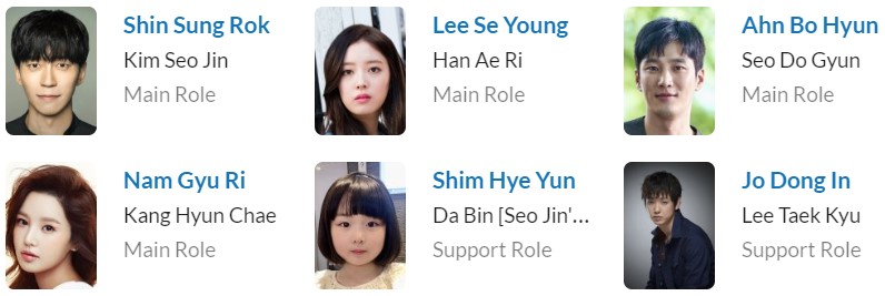 نقش های اصلی Shin Sung-Rok در نقش Kim Seo-Jin بازیگر سریال های : Lee Se-Young در نقش Han Ae-Ri بازیگر سریال های : Ahn Bo-Hyun در نقش Seo Do-Kyun بازیگر سریال های : Nam Gyu-Ri در نقش Kang Hyun-Chae بازیگر سریال های : سایر بازیگران Shim Hye Yun در نقش Da Bin Jo Dong In در نقش Lee Taek Kyu Kang Seung Yoon در نقش Im Geon Wook Yu Yeon Seok در نقش [Prison guard] Im Chul Hyung در نقش Park Ho Young Shin Goo در نقش Yoo Seo Il Hwang Jung Min در نقش Kwak Song Ja Lee Jung Joon در نقش Kim Seo Jin So Hee Jung در نقش Hye Kyung Jung Ae Ri Kwon Hyuk Lee Joo Myung Go Gyu Pilلیست بازیگران