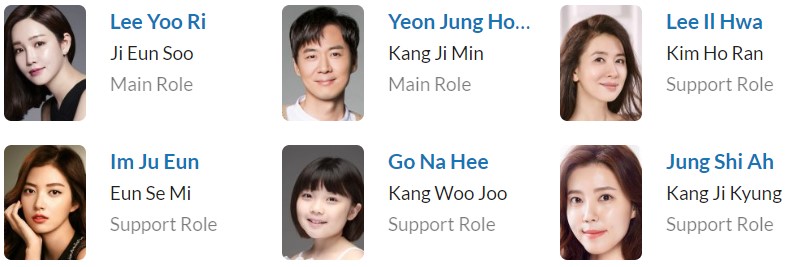 نقش های اصلی Lee Yu-Ri در نقش Ji Eun-Soo بازیگر سریال های : Yeon Jeong-Hun در نقش Kang Ji-Min سایر بازیگران Lee Il-Hwa در نقش Kim Ho-Ran Lim Ju-Eun در نقش Eun Se-Mi Kwon Hwa-Woon در نقش Kim Yeon-Joon Kim Seung-Hwan در نقش Kang Seung-Hwa Lee Won-Jong در نقش Yoon Sang-Kyu Choi Dae-Sung در نقش Seo Hyeong-Kook Ko Su-Hee در نقش Jung Mi-Jin Jung Si-A در نقش Kang Ji-Kyeong Yoon Sung-Mo در نقش Choi Hyun-Bin Baek Song-Yi در نقش Kang So-Ri Kwon Hyuk-Hyun در نقش Kim Woong Go Na-Hee در نقش Kang Woo-Jooلیست بازیگران