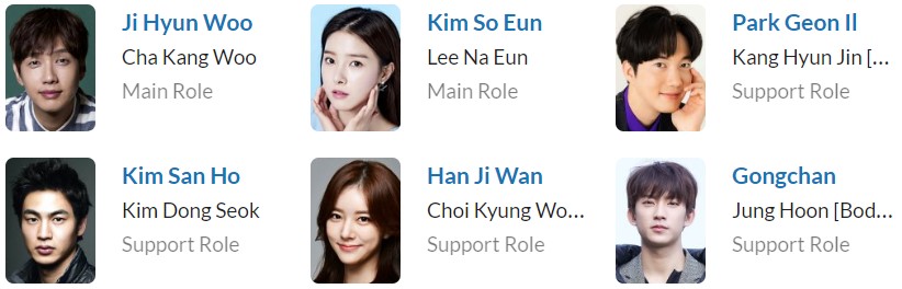 نقش های اصلی Ji Hyun-Woo در نقش Cha Kang-Woo بازیگر سریال های : Kim So-Eun در نقش Lee Na-Eun بازیگر سریال های : سایر بازیگران Keon Il در نقش Kang Hyun-Jin Kim San-Ho در نقش Kim Dong-Seok Han Ji-Wan در نقش Choi Kyeong-Won Son Ji-Hyun در نقش Han A-Reum Gong Chan در نقش Jung-Hoon Ha-Young در نقش Jeon Bo-Ra Cha Soo-Yeon در نقش Jo Ji-A No Ji-Hoonلیست بازیگران