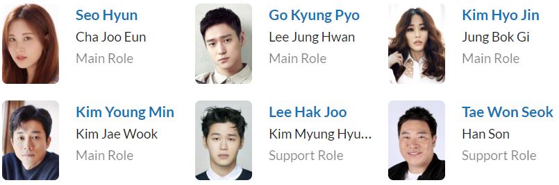 نقش های اصلی Ko Gyung-Pyo در نقش Lee Jung-Hwan بازیگر سریال های : Seohyun در نقش Cha Joo-Eun بازیگر سریال های : Kim Young-Min در نقش Kim Jae-Wook بازیگر سریال های : Kim Hyo-Jin در نقش Jung Bok-Ki سایر بازیگران Park Sung-Geun در نقش Cha Hyun-Tae Song Seon-Mi در نقش Kim Mi-Sook Tae Won-Seock در نقش Han Son Lee Hak-Joo در نقش Kim Myung-Hyun Yoo Hee-Je Jang Jin-Hee Yoon Sa-Bong Kim Ba-Da Kim Min-Sang Cha Soo-Yeon Kim Seo-Won Yoon Jung-Hoon Kwak Min-Hoلیست بازیگران