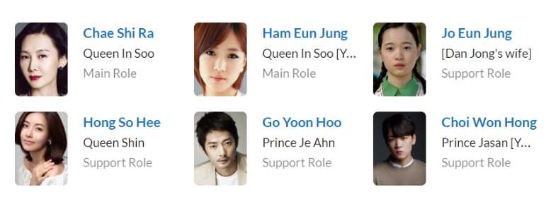 - Go Jung Min در نقش Yoon Chang Yeon / Queen Jung Hyun
