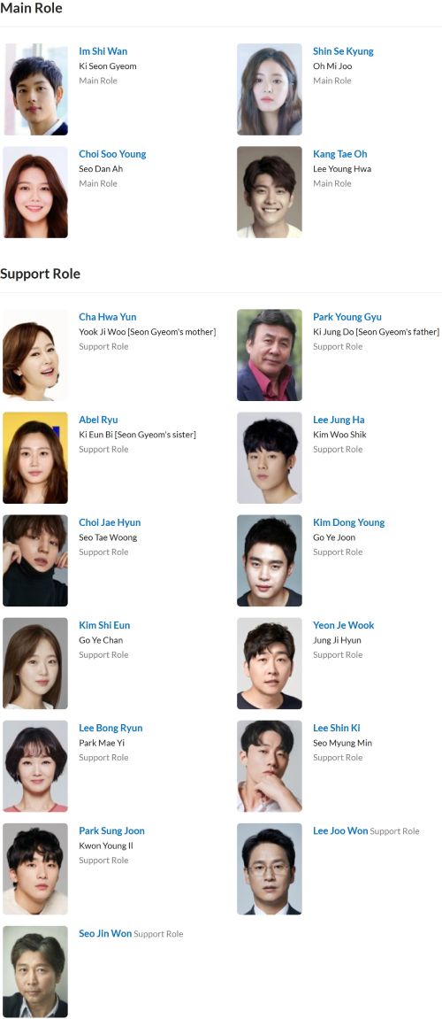Im Si-Wan در نقش Ki Sun-Gyeom بازیگر سریال های : Shin Se-Kyung در نقش Oh Mi-Joo بازیگر سریال های : Rookie Historian Goo Hae Ryung Soo young در نقش Seo Dan-A بازیگر سریال های : Kang Tae-Oh در نقش Lee Young-Hwa بازیگر سریال های : Park Young-Gyu در نقش Ki Jung-Do Cha Hwa-Yeon در نقش Yook Ji-Woo Lee Bong-Ryun در نقش Park Mae-Mae Ryu Abel در نقش Ki Eun-Bi Seo Eun-Kyung در نقش Dong-Kyung Yeon Je-Wook در نقش Jung Ji-Hyun Lee Jeong-Ha در نقش Kim Woo-Sik Choi Jae-Hyun در نقش Seo Tae-Woong Kim Dong-Young در نقش Ko Ye-Joon Kim Si-Eun در نقش Ko Ye-Chanلیست بازیگراننقش های اصلی