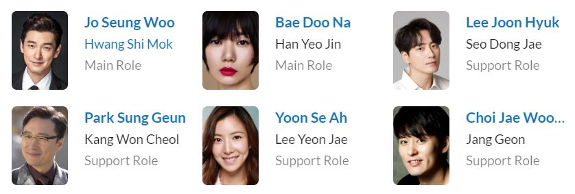 نقش های اصلی Jo Seung Woo در نقش Hwang Shi Mok بازیگر سریال های : Bae Doo Na در نقش Han Yeo Jin بازیگر سریال های : سایر بازیگران Lee Joon Hyuk در نقش Seo Dong Jae Park Sung Geun در نقش Kang Won Cheol Yoon Se Ah در نقش Lee Yeon Jae Choi Jae Woong در نقش Jang Geon Choi Moo Sung Jeon Hye Jin Song Ji Hoلیست بازیگران