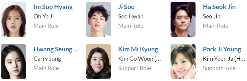 نقش های اصلی Im Soo-Hyang در نقش Oh Ye-Jin بازیگر سریال های : Ji Soo در نقش Seo Hwan بازیگر سریال های : Ha Seok-Jin در نقش Seo Jin بازیگر سریال های : Hwang Seung-Un در نقش Carry Jung سایر بازیگران Park Ji-Young در نقش Kim Yeon-Ja Kim Mi-Kyung در نقش Kim Go-Woon Choi Jong-Hwan در نقش Seo Sung-Gon Lee Jae-Yong در نقش Chairman Bang Jung Eun-Pyo در نقش Lee Kyeong-Sik Shin Yi در نقش Oh Ji-Young Kwon Hyuk در نقش Kim Yeon-Cheol Seo Eun-Woo در نقش Yoon Ji-Yang Jung Wook-Jin در نقش Park Woo-Geunلیست بازیگران